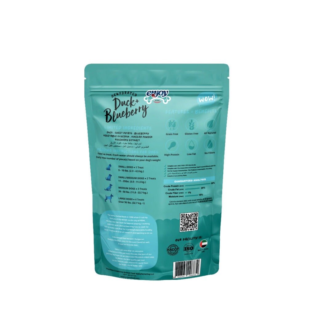 Be the first to review “Enjoy, Dehydrated Duck + Blueberry Premium Human-grade Dog Treats”
